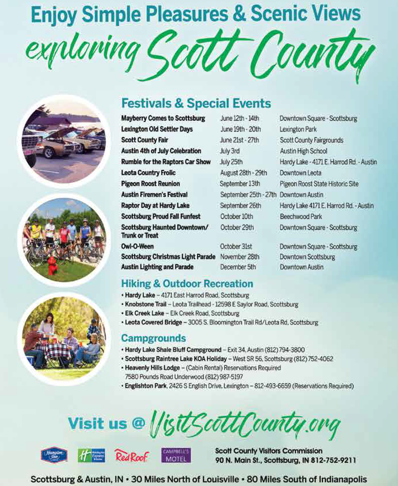 We can provide a local step-on guide that will help you travel the scenic backroads of Scott County while learning about the fascinating history of Scott County and the people who helped forge it. From early settlers and the impact of wars to entrepreneurs and the contributions the people of Scott County have made in the world around us.
